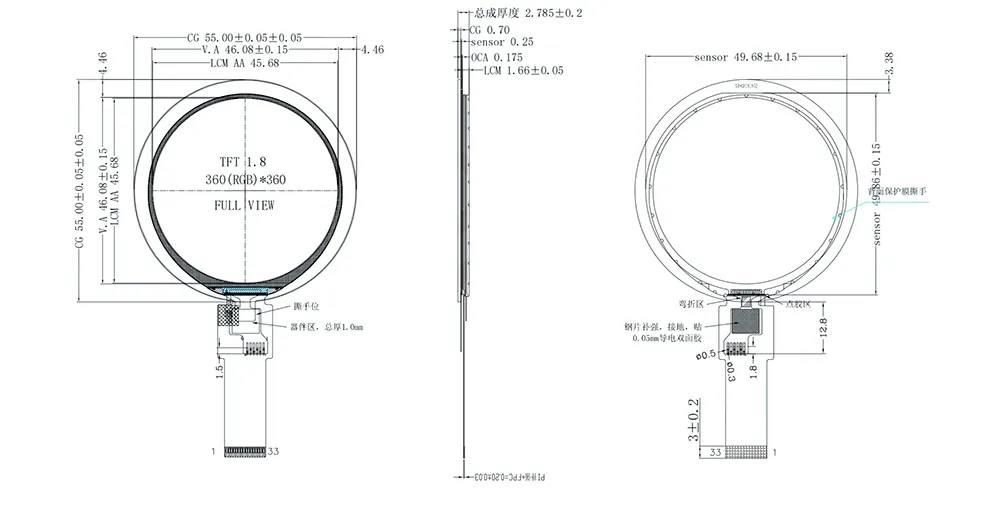 | kích thước phác thảo | 55(H)*55(V)*2.785(T) | Giao diện cảm ứng | IIC |