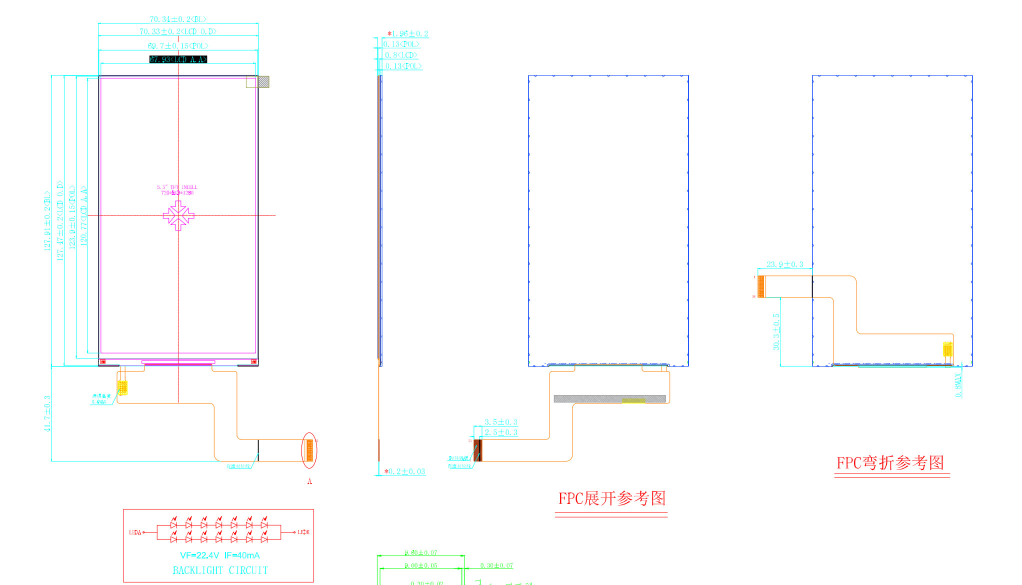 | Phác thảo chiều | 70,34(W)*127,91(H)*1,96(T) | đèn nền led | 14 chiếc |