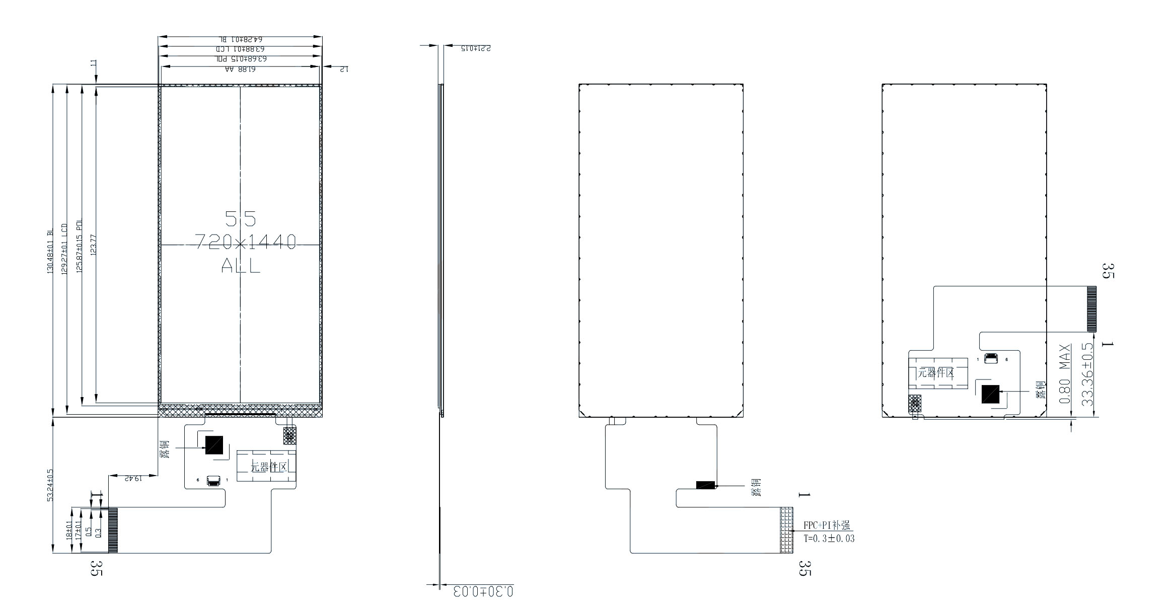 Màn hình LCD IPS 3,97 inch MIPI với màn hình cảm ứng đa điểmMàn hình IPS LCD 5,5 inch này hỗ trợ giao diện MIPI, có độ phân giải 720*1440 HD+ và sử dụng IC trình điều khiển ST7703 hoàn thiện và đáng tin cậy. Độ sáng dao động từ 500-1000 lumen, đảm bảo khả năng đọc rõ ràng ngay cả dưới ánh sáng mặt trời trực tiếp. Sản phẩm này có thể được sử dụng rộng rãi trong nhiều thiết bị điện tử khác nhau, bao gồm chuông cửa video, thiết bị nhà thông minh và các thiết bị điện tử tiêu dùng khác cũng như thiết bị y tế và công nghiệp. Nó có thể được vận chuyển dưới dạng gói có màn hình cảm ứng điện dung hoặc có sẵn các dịch vụ tùy chỉnh. Tất cả màn hình của chúng tôi đều tuân thủ các quy định RoHS và tuân thủ các tiêu chuẩn nghiêm ngặt về môi trường và an toàn, phục vụ nhiều công ty Fortune 500 trên toàn thế giới.