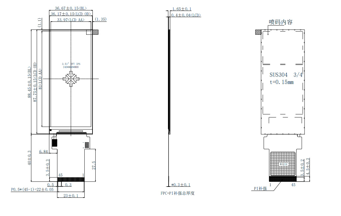Cái nàyMàn hình dải dài 3,51 inchtự hào có độ phân giải 340*800, góc nhìn đầy đủ IPS và sử dụng IC trình điều khiển ST7701S trưởng thành và ổn định. Nó hỗ trợ giao diện RGB 16/18/24-bit và giao diện MIPI 1/2 kênh. Số model từ Công nghệ Hongjia Thâm Quyến là HJ3510-01. Nó có đầu nối 45 chân tiêu chuẩn và giao diện màn hình cảm ứng điện dung I2C. Màn hình dạng thanh cỡ nhỏ này phù hợp để sử dụng trong các thiết bị gia dụng nhỏ, thiết bị nhà thông minh, thiết bị làm đẹp, máy pha cà phê, thiết bị y tế và các sản phẩm khác. Chúng tôi cũng cung cấp dịch vụ tùy biến.